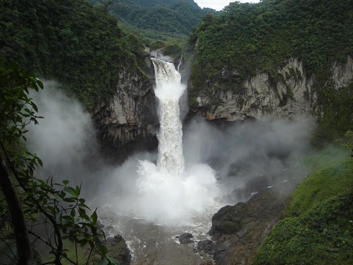 La cascada de San Rafael (El Chaco-Napo) la más alta y caudalosa del Ecuador, tiene 160m aproximadamente y se encuentra al pie del volcán El Reventador.