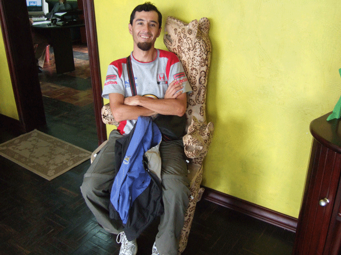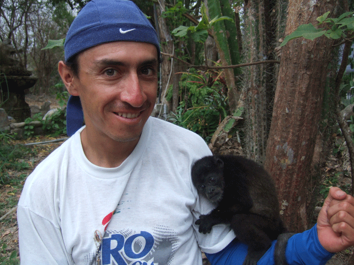 MARIO PATRICIO VILLEGAS; quiteño, 32 años de edad, técnico electrónico y destacado atleta de élite en deportes de resistencia, competidor a nivel nacional de atletismo, ciclismo de montaña, y deporte aventura, fotógrafo aficionado, autor del libro “ECUADOR VISTO DESDE UNA BICICLETA”, el camarógrafo, secretario, administrador de los pocos dólares y el fotógrafo en la gira.